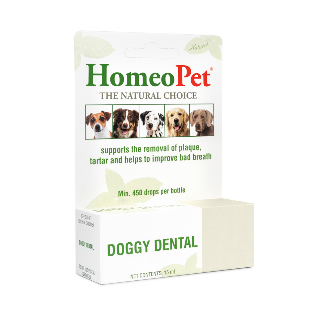 - HomeoPet Doggy Dental is a natural homeopathic medicine that can be safely used with adult dogs, young dogs, puppies and senior dogs.