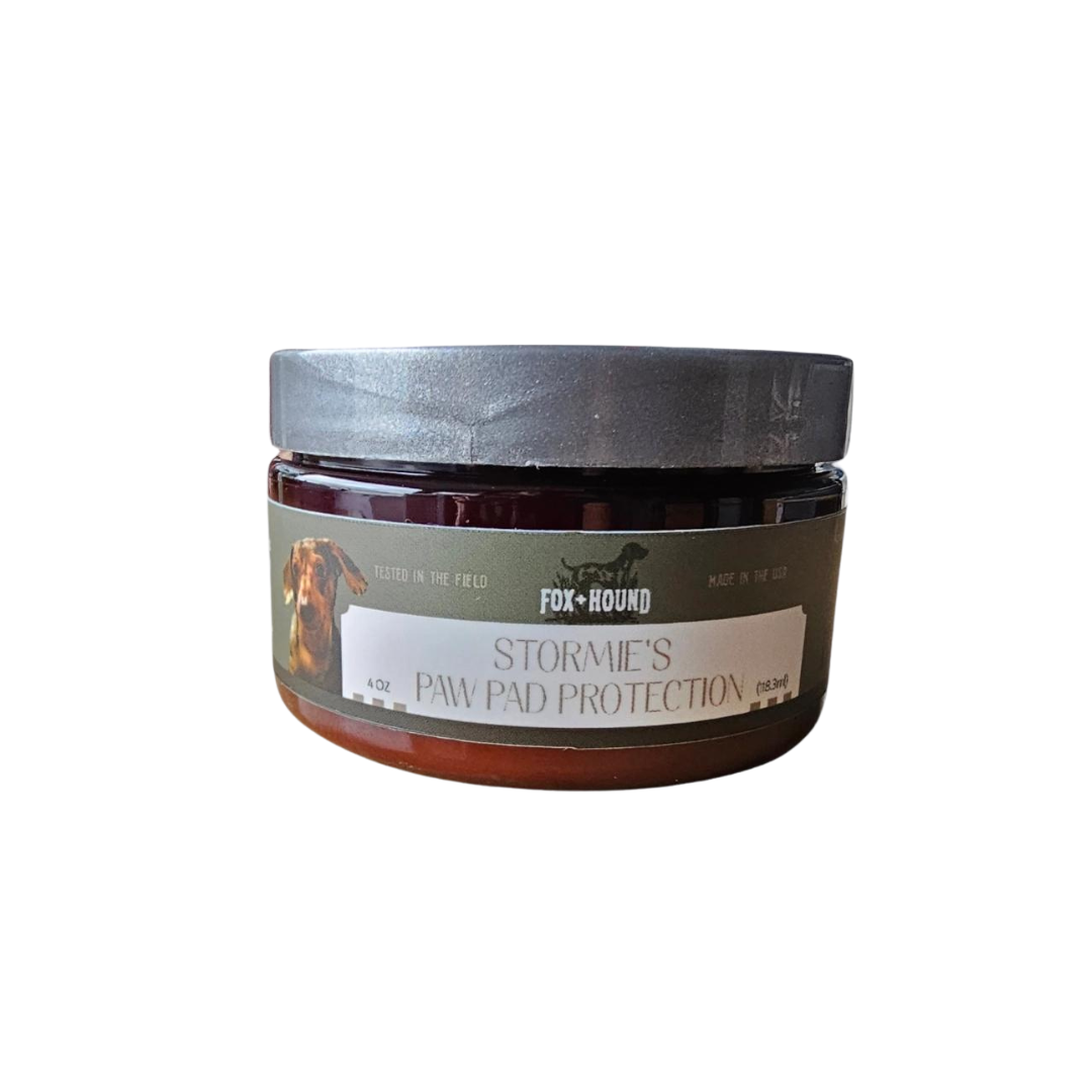 Fox + Hound Stormie's All Seasons Paw Pad Protection is made with nature's most powerful and non-irritating healing agents that moisturize and soothe your dog's irritated pads. Stormie's Paw Protection is specifically developed to be an intensive treatment for a dog's delicate pads which, when left untreated, can lead to dryness and inflammation that can lead to cracking, bleeding, and of course, great discomfort for our loyal companions.